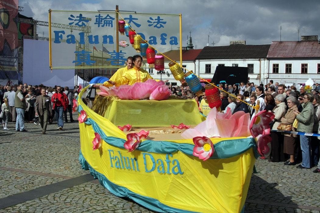 当法轮大法学员的彩船出现在人们视线中时,喧嚣的声音顿时消失,好象时间都停止了,宁静中只听见“普度”、“济世”的音乐在空中回荡,如甘露撒入心田,瞬间人群中爆发出热烈的掌声和欢呼声,此起彼伏举起的相机,一浪又一浪的掌声,伴着彩船驶向目的地。经过主席台时,大会主持人为观众介绍法轮大法,大屏幕上不断显现“法轮大法在波兰”的横幅实况,并不断给出彩船上正在演示的法轮功功法的特写镜头。因围观人群过多,当地保安不得不为彩船几次专门护航。在终点站,很多人等在那里准备和“法船”合影,和法轮功学员合影。