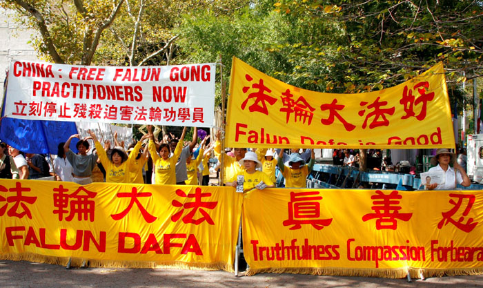 ![]() 法轮功学员联合国广场上谴责中共迫害 |