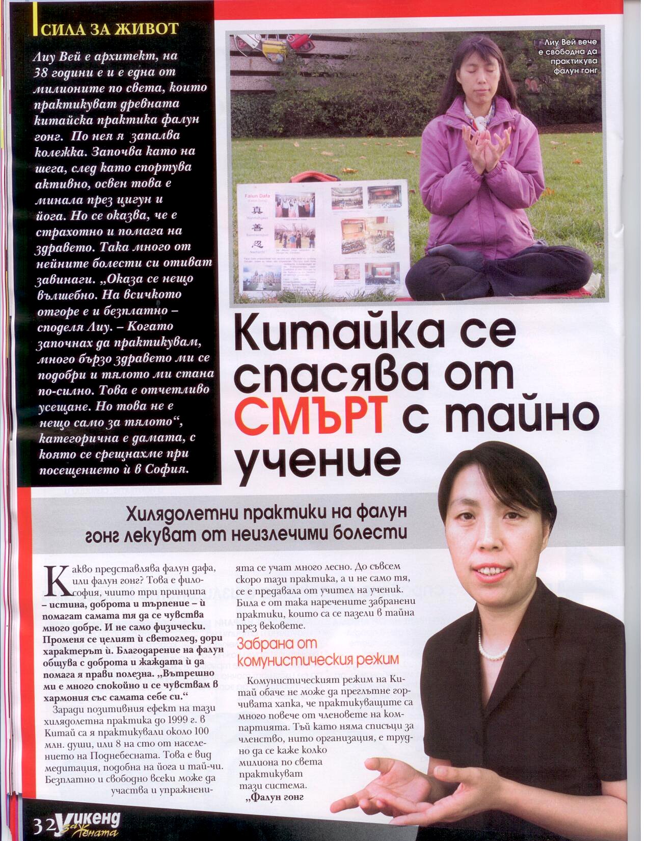 保加利亚杂志《女士周末》发表专访法轮功学员的文章