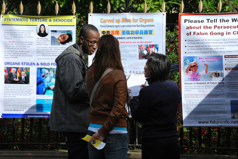 ![]() 卡迪夫民众向学员了解中共活摘法轮功学员器官的暴行真相 |