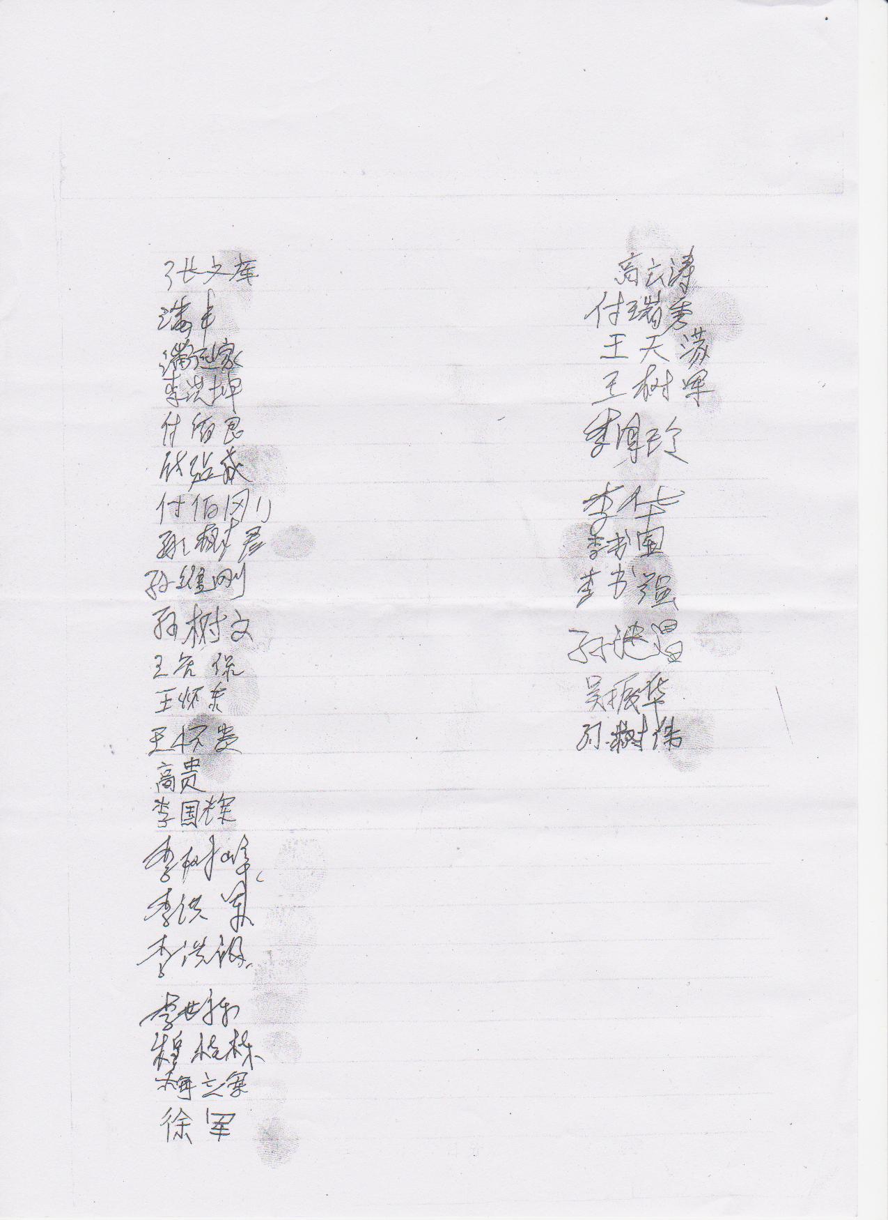 现忠胜村全体村民签字联保,希望政府释放我村的三个村民,让家中老人能够得到赡养。孩子能够正常求学、成长。