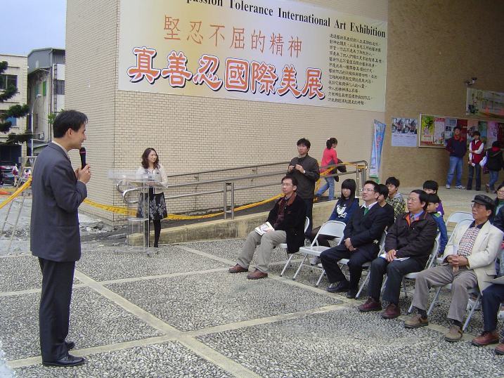 一扫前几天的阴雨,当天宜兰出现难得的冬阳。开幕茶会先由法轮功学员组成的旗鼓队与腰鼓队登场表演,吸引了许多在文化中心广场散步的民众驻足观看。来宾致词后,民众相偕登上文化局二楼的第三展览室,随着揭幕仪式的完成,展览室挤满了观画的民众。