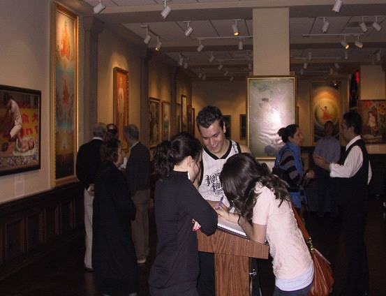 美展留言簿上写满了“Powerful(有力)”、“Shocked(震撼)”、“Excellent exhibit(完美的展览)”、“Remember the stories happened in our world(别忘了画上的迫害故事)”以及“Create a more compassionate world (构建一个慈悲的世界)”等肺腑之言。