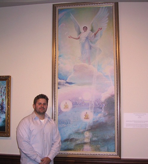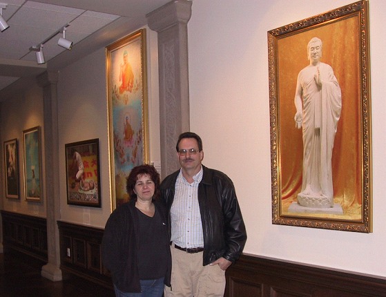 ![]() BILL在他最欣赏的《法轮圣王》前留影 |