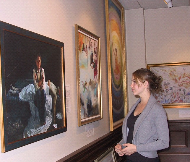 正在准备报考艺术专业的学校职工朱莉女士(JULIE)被《蒙难在中原》这幅作品深受吸引,她说画中女主人公在承受巨难和煎熬的状况下,还能展示出非凡的坚毅与平和,催人泪下,使她深深折服于画家的功力。