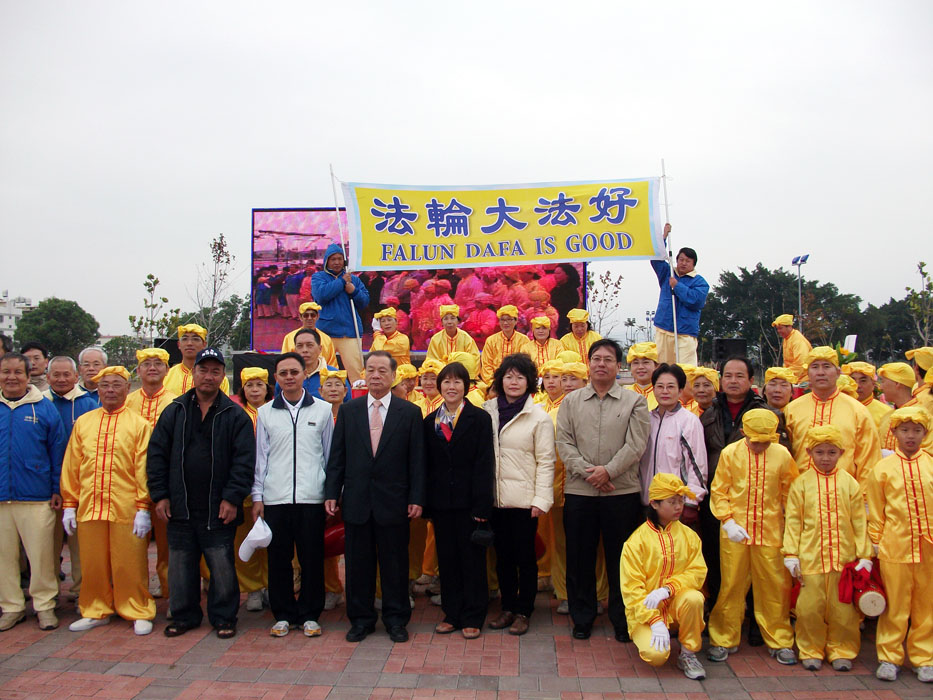 此外,区长王和雄以亲身经验赞扬大法,表示法轮功的美好对区民健康有帮助。最后,区长、主管与法轮功学员合照,齐呼“法轮大法好”。