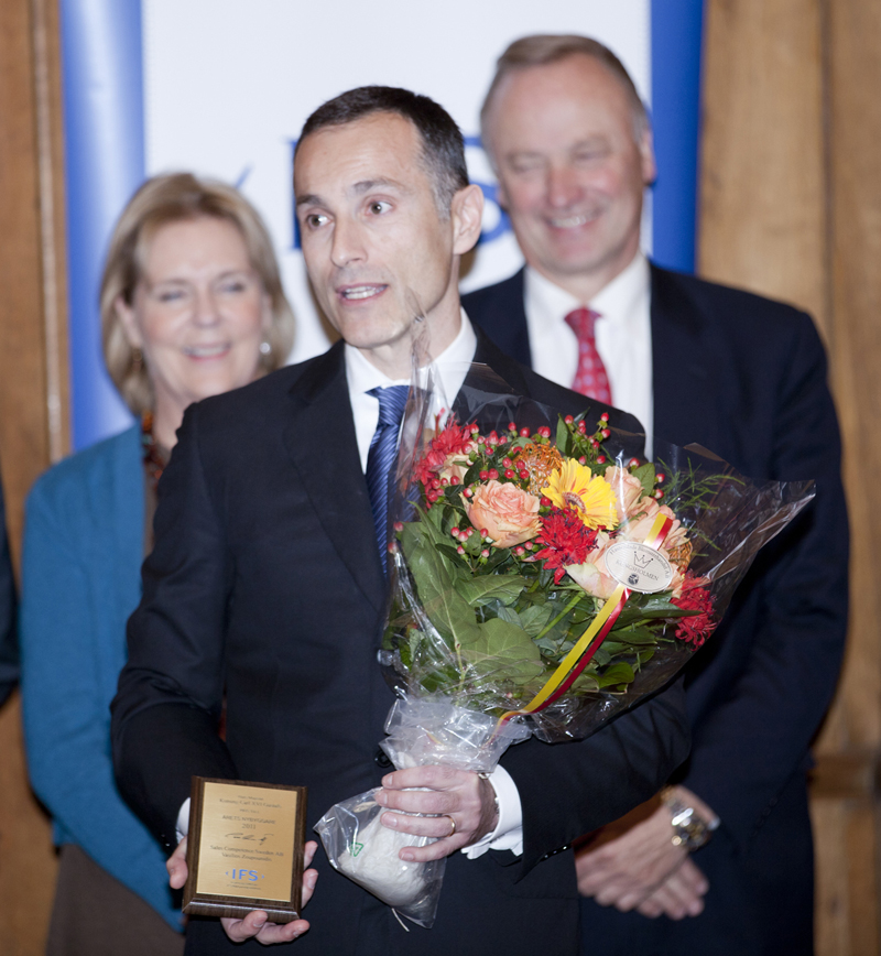 今年获此特殊荣誉的瑞典法轮功学员瓦西柳斯(Vasilios Zoupounidis),他创立的公司通过销售电信公司的各式电话,和瑞典众多中、小型公司建立了电信伙伴关系,赢得了客户的信任。