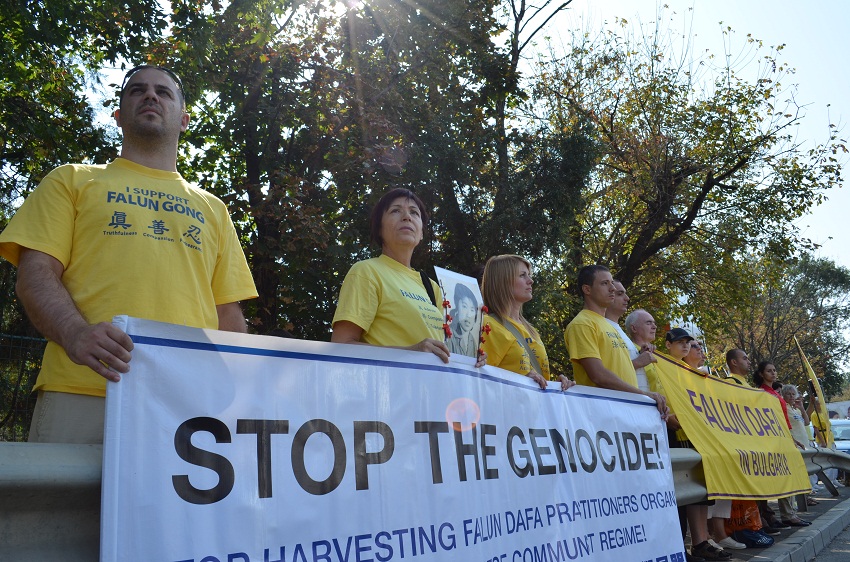 东欧法轮功学员在中共大使馆前集会,抗议中共迫害法轮功