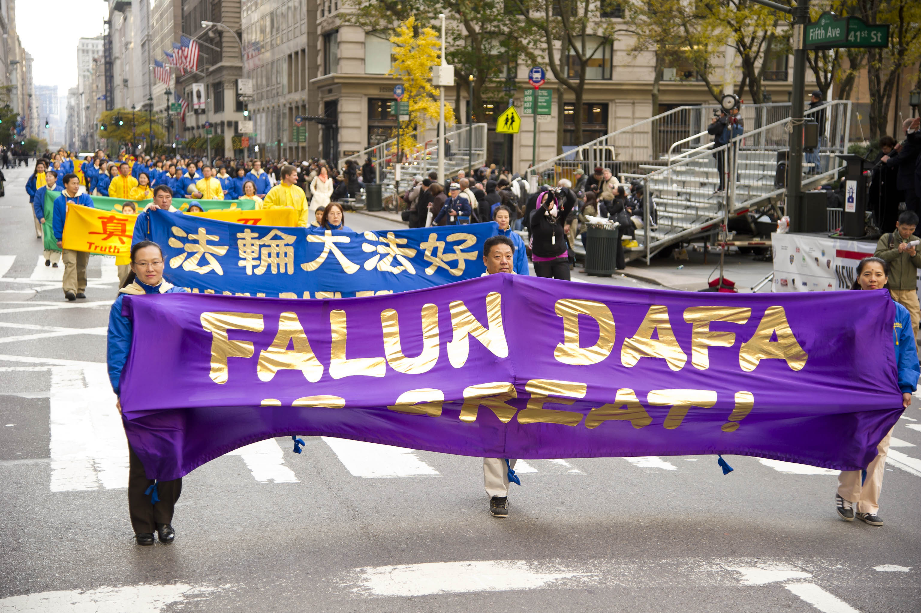 ![]() 法轮功学员参加纽约市老兵节游行 |