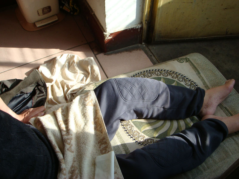 ![]() 脚还没有消肿 | ![]() 因大小便失禁,怕腿冻着,只好把一条薄裤套在腿上,不敢全穿上 |