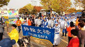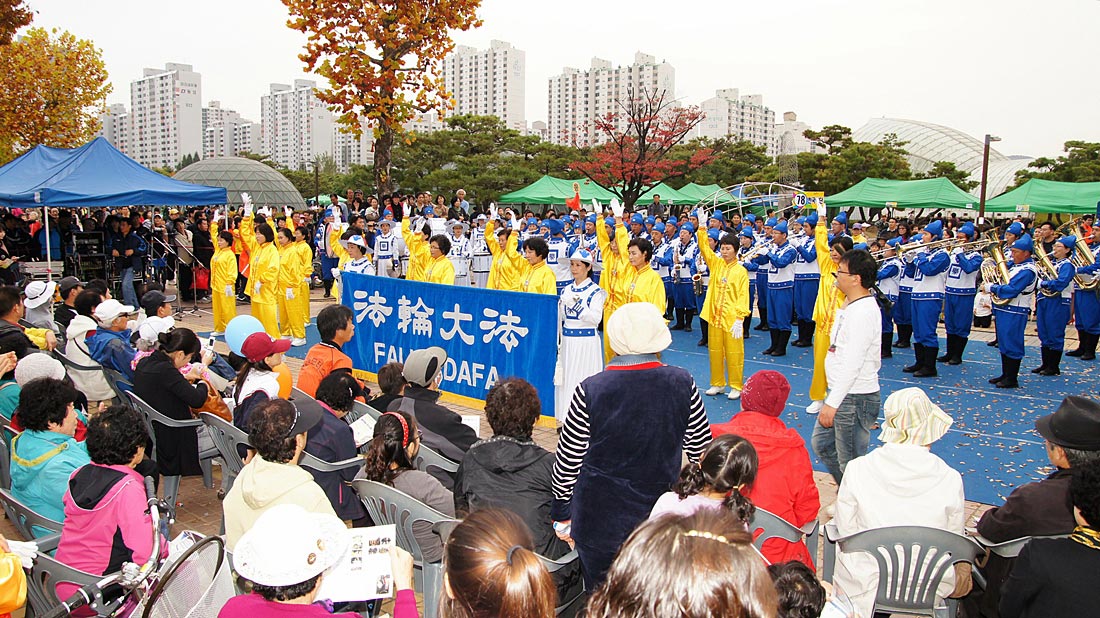 【明慧网二零一一年十一月二日】韩国法轮功学员组成的天国乐团、腰鼓队及功法演示队,于二零一一年十月二十三日受邀参加“第六届富川市民和谐广角”庆典,他们的表演荣获了富川未来奖,三千年一开的奇花优昙婆罗花在活动现场美丽绽放。