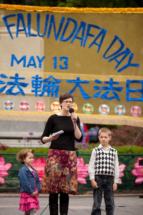 ![]() 法轮功学员凯参加庆祝法轮大法日的活动 |