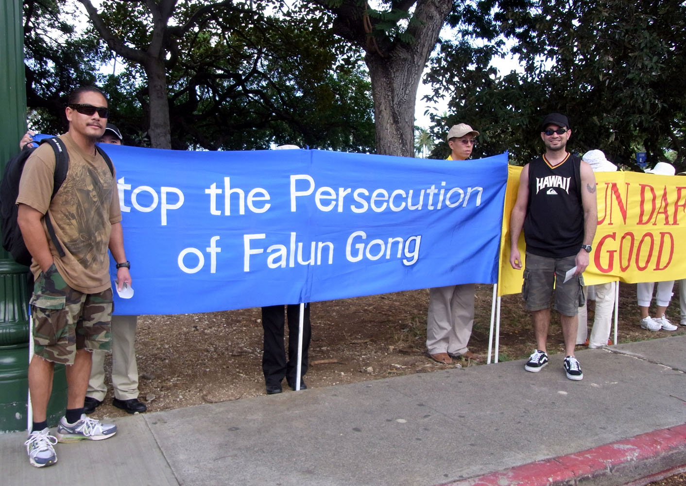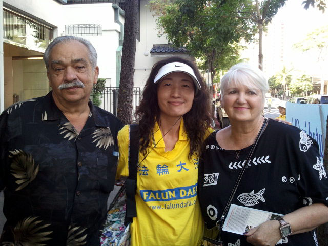 法轮功学员徐小姐表示,夏威夷民众都很善良,听到法轮功在中国遭受的残酷迫害后抱着学员哭,警察也对拉横幅的学员说:“你们是很勇敢的人!”(You are courage men.)连续说了两次,令她印象非常深刻。