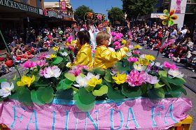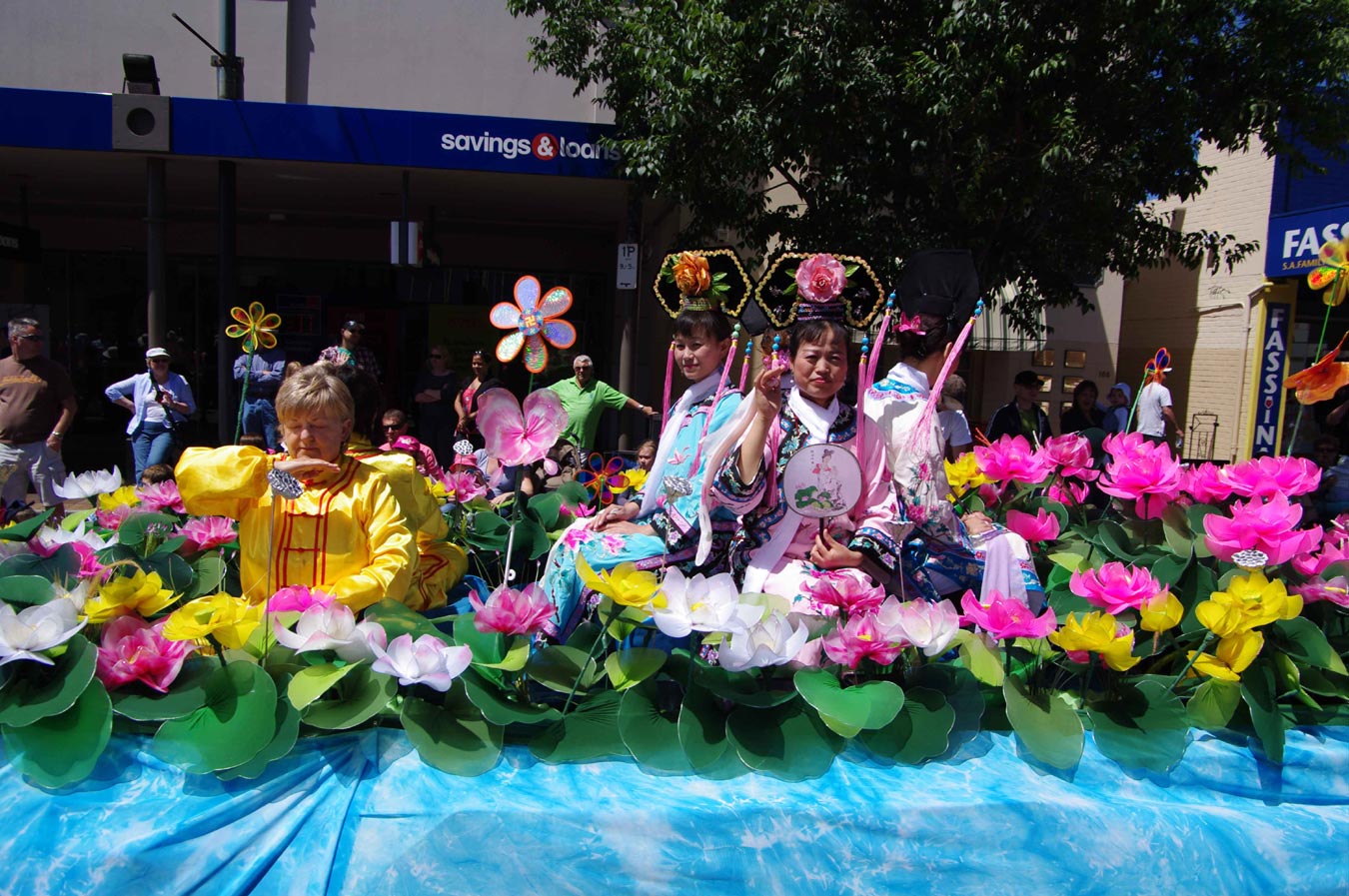 南澳法轮功学员精心制作的彩车引人注目。看到法轮功学员的游行队伍和彩车,华人的脸上露出惊愕。他们在自由世界里看到了法轮功这么美好,忍不住拍照、交谈。看到缓缓行驶、保护游行队伍顺畅的警车时,赵女士自言自语道:“在国内,警车专门抓法轮功。可是在这,警车是保护法轮功的。”