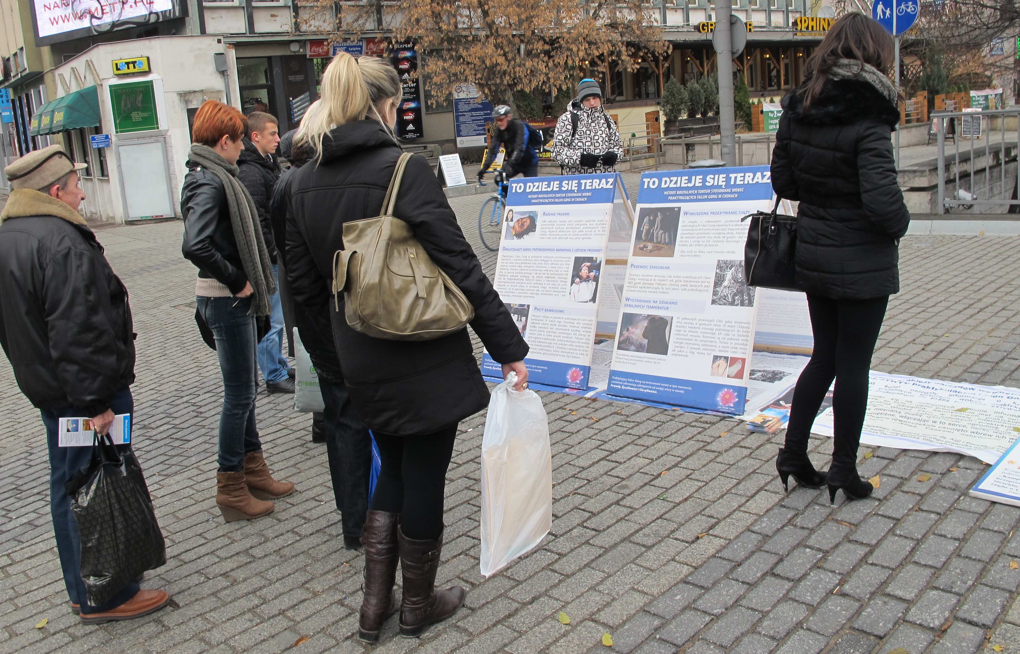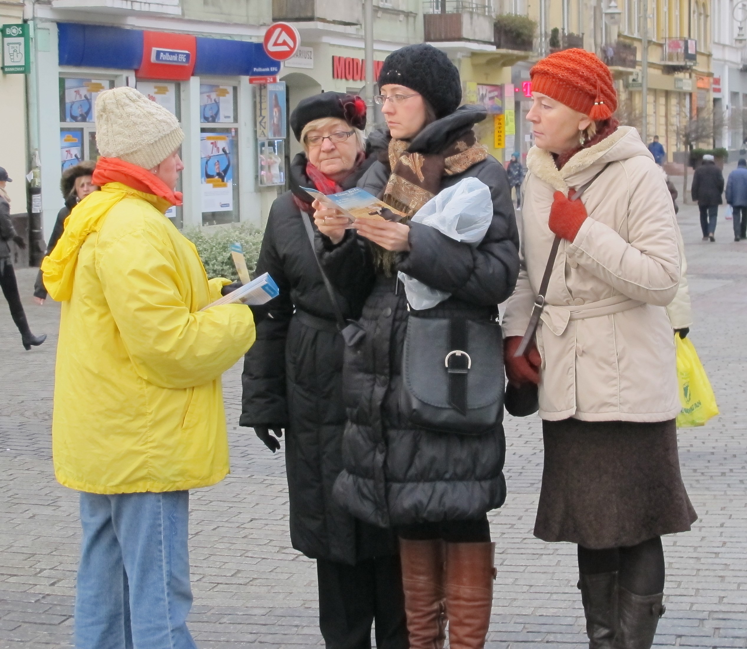 【明慧网二零一一年十一月二十九日】二零一一年十一月二十六日,部份波兰法轮功学员来到波兰东南部,有着九百多年历史的凯尔采(Kielce)市,向那里的民众介绍法轮功。