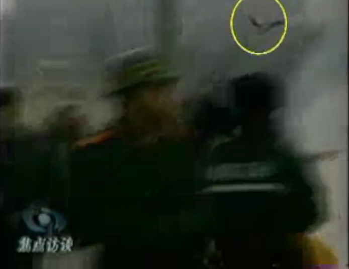 ![]() CCTV“自焚”节目慢动作分析-3:重物逆着灭火器喷射流飞向警察 | ![]() CCTV“自焚”节目慢动作分析-4:一名身穿大衣的男子正好站在出手打击的方位,仍然保持着一秒钟前用力打击的姿势 |