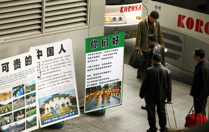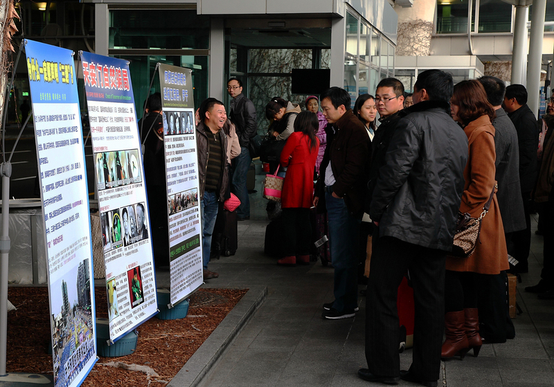 韩国仁川国际机场的“法轮功真相图片展”,每天吸引着熙熙攘攘的各国乘客。