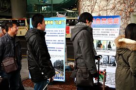 【明慧网二零一一年十二月十四日】韩国仁川国际机场的“法轮功真相图片展”,每天吸引着熙熙攘攘的各国乘客。尽管中共驻韩大使馆向韩国外交通商部提出“数次交涉”,但韩国警方和机场方面认为,在法治国家,这些图片展是合法的,无法阻止。