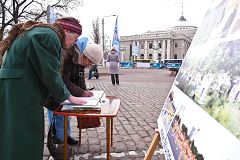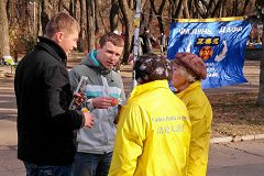 乌克兰法轮功学员在海港城市奥德萨举行户外功法展示路人详细了解法轮功真相 乌克兰法轮功学员在海港城市奥德萨举办学法交流会期间合影留念 |
