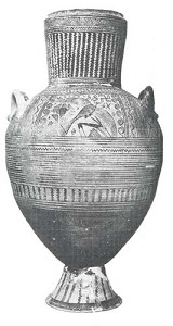 ![]() 罗浮宫所藏:六千年前的美索不达米亚大碗、苏萨坟场出土。 | ![]() 马厂类型陶罐,1975年青海乐都县柳湾墓地出土,距今4300年左右。 |