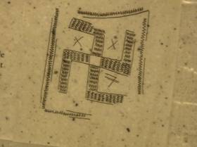 更为令人惊奇的是:在印第安古老的霍比部落,一块被称为“预言石”的石刻(据说有万年以上历史),也发现有卍字符的踪迹。这就是著名的霍比预言:一个带有卍字符的圆轮光芒四射,许多人模仿着大人的动作。似乎表达“某种与卍字圆轮有关的奥秘,人们因此会受益、达致升华”。