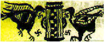 ![]() 印度河谷莫亨朱达罗遗迹印章、银币上的文饰,距今4-5千年之间(网络图片) | ![]() 古埃及陶绘(网络图片) |