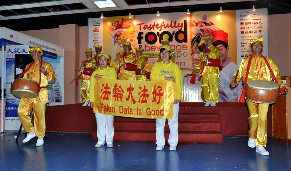 【明慧网二零一一年十二月二十一日】马来西亚最大型食品消费展“二零一一年美食·食品展览” 于十二月十六日至十八日,一连三天在吉隆坡太子世界贸易中心三号厅举行。由马来西亚法轮功学员组成的腰鼓队以及天国乐团分别在展览会的第二天与第三天应邀请到场演出,把法轮大法的美好带给大家。