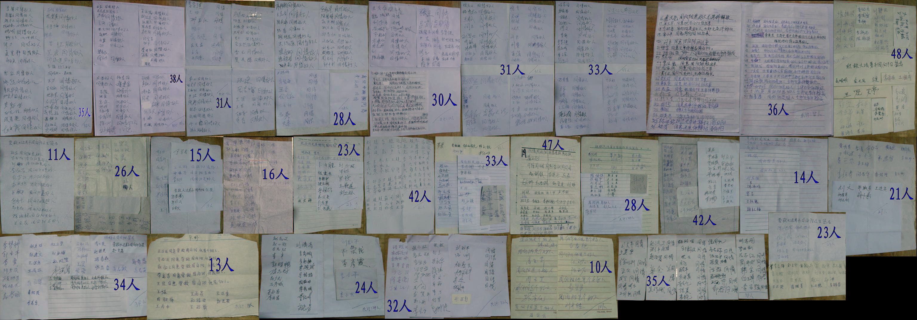 ![]() 近1500位乡亲纷纷签名,要求解救周向阳,依法处理监狱的酷刑犯罪。 |