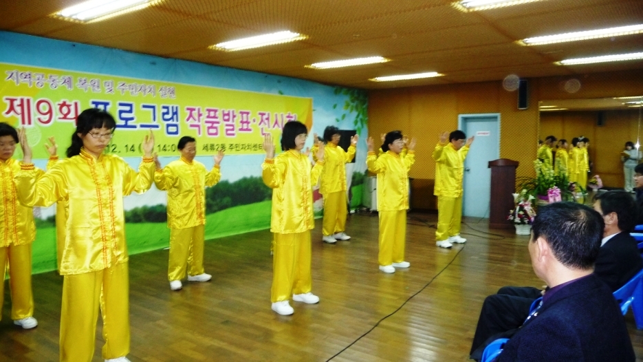 【明慧网二零一一年十二月二十六日】(韩国来稿)二零一一年十二月十四日,韩国京畿道水源市所举办了社区各项目作品发表会,水源地区法轮功弟子也参加了此次发表会。