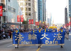 【明慧网二零一一年十二月六日】(明慧记者王枚温哥华报道)二零一一年十二月四日,加拿大温哥华第八届圣诞大游行(Rogers Santa Claus Parade)下午于市中心举行,吸引超过三十万民众观看。法轮功学员的游行队伍是当天阵容最大、最亮丽的一个方阵,沿途受到观众的热烈欢迎。
