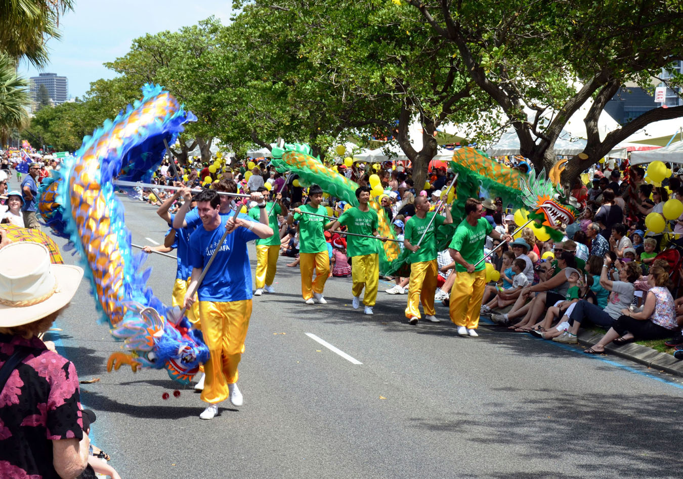 上午的珀斯圣诞游行队伍是绕天鹅河畔的兰利公园(Langley Park)一圈,历时约一小时。当日天气很热,气温高达38.5摄氏度,但高温没有挡住人们的热情,仍有超过十五万人到现场观看。法轮功学员的游行方队包括功法演示、舞龙和扇子舞。在游行过程中,主持方先后六次介绍法轮功功法和法轮功学员游行方队,主持人多次由衷地赞许“法轮功方队非常祥和(very peaceful),非常有精神内涵(very spiritual)”。