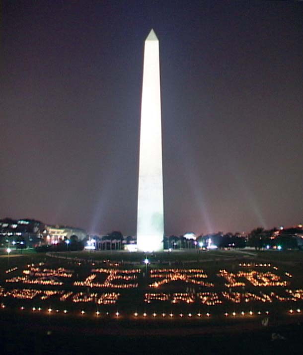 |  2003年7月,法轮功学员在美国华盛顿大型排字组成“法正天地” |