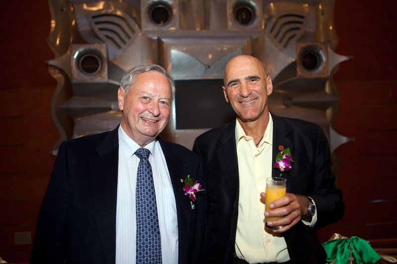 纽省立法会议员,家庭优先党的领袖高登•莫伊斯(Gordon Moyes)先生(左)与纽省绿党国会议员伊恩•寇恩(Ian Cohen)(右)