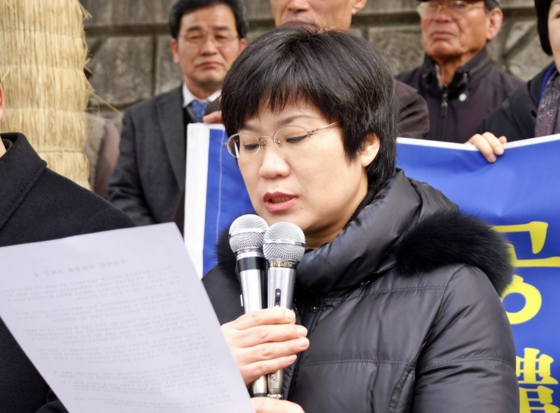 二零一一年二月十六日,韩国“爱国市民团体协会”、韩国法轮大法学会和釜山市民百余人在中共驻釜山领事馆前举行抗议集会,呼吁驱逐中共驻韩总领事馆副总领事金燕光。