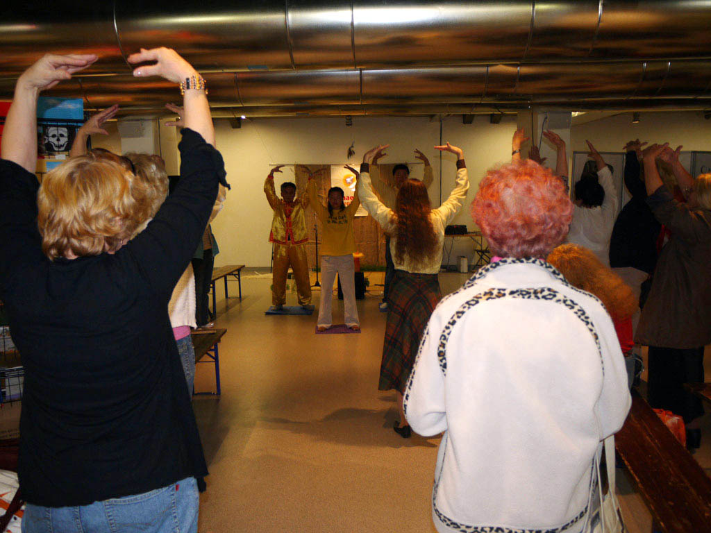 法轮功的展位经常在海外的健康博览会上与世界各国人民见面,许多民众借此机缘得以修炼法轮功并身心受益。自二零零五年四月开始,爱沙尼亚法轮功学员多次参加首都塔林市、萨乌艾市等地的健康博览会,向人们介绍法轮大法的祥和美好,民众对法轮功表示了极大的兴趣,纷纷当场学炼功法,俄罗斯语版本的《转法轮》和教功光碟很快售完。