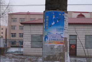 - 大陆东北城镇出现神韵光碟海报(图)- 近日,一款设计精美的“神韵光碟海报”出现在中国大陆东北某镇,给这个节日气氛还未散去的小城送来了缕缕温馨。