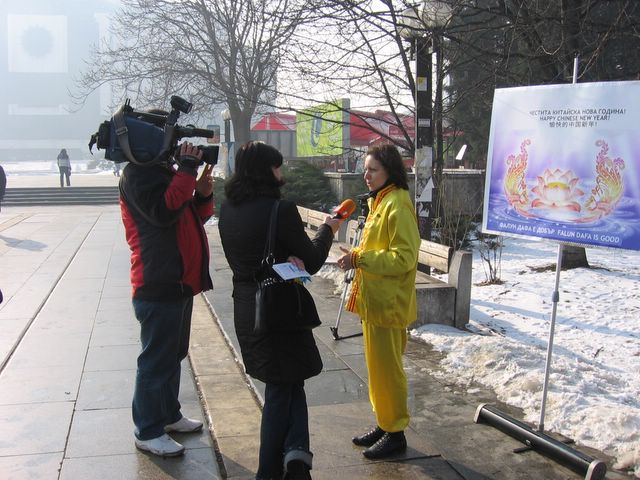二零零六年一月二十九日,保加利亚法轮功学员聚集在首都索菲亚国家文化宫前的街道旁,向人们介绍法轮功及其在全世界许多国家广受欢迎的情形,并揭露中共残酷迫害法轮功的真相。许多人对法轮功很感兴趣,表示将到炼功点学功,还有人兴奋地说:“这正是我在寻找的!”