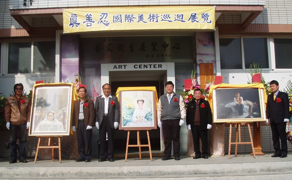 【明慧网二零一一年二月二十七日】“真善忍国际美展”二零一一年二月十七日在云林县的北港高中展出,受到地方各界的热烈欢迎。上午九时,该校图书馆前,揭幕仪式在天国乐团悠扬的鼓乐声中拉开序幕,场面庄严隆重,随后由六位来宾代表共同揭幕。