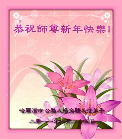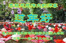 以下是在中国大陆被中共非法关押的大法弟子辗转传出来的贺词,恭祝师尊新年快乐。