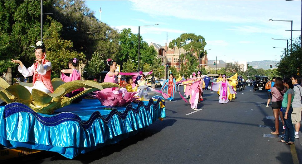 【明慧网二零一一年二月三日】二零一一年一月二十六日是澳大利亚国庆节,南澳法轮功学员参加了当地的庆祝游行。这是法轮功学员第八次参加澳大利亚国庆节游行。