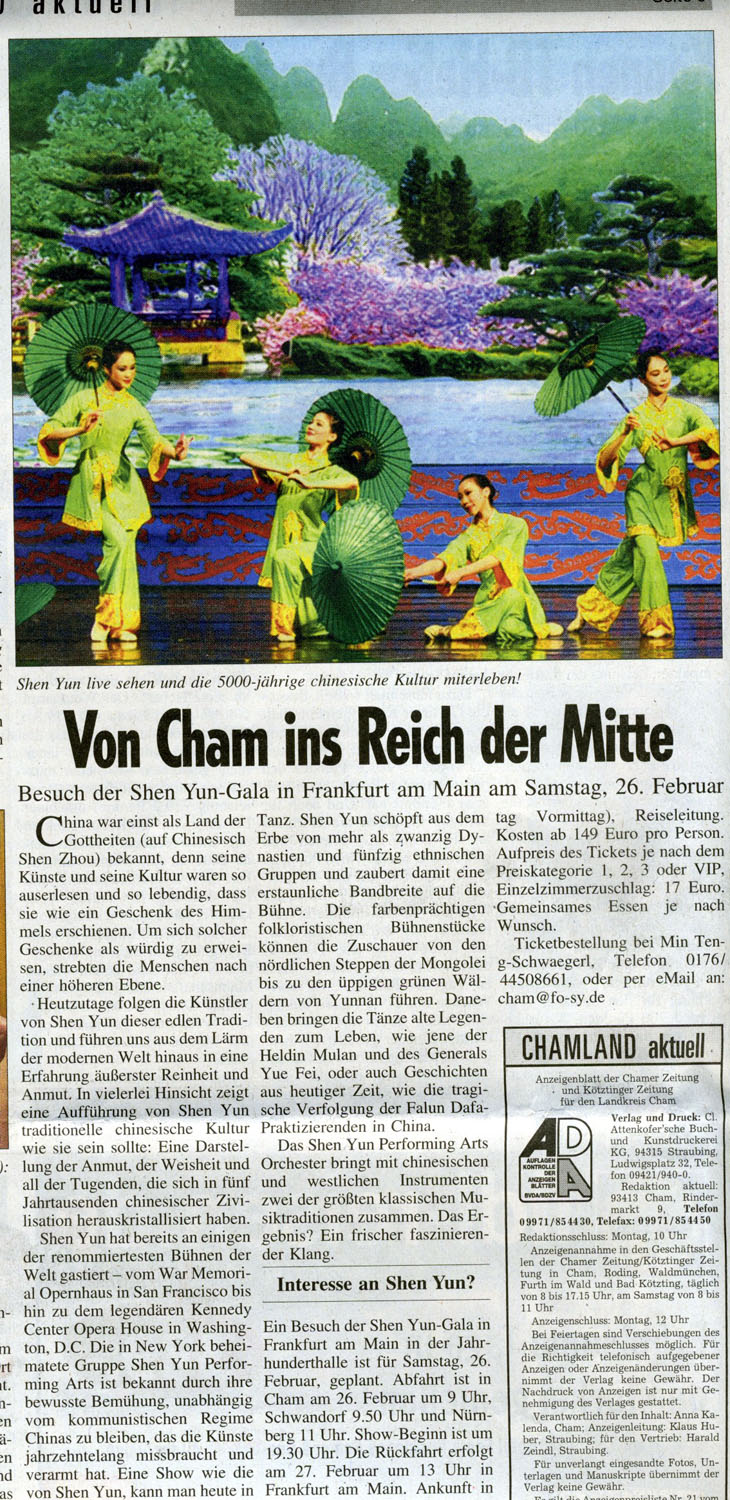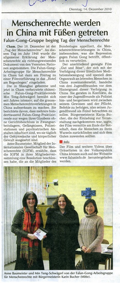 卡姆的另一家日报《拜恩森林回响报》(Bayerwald-Echo)也报导了影展的消息,揭露中共活摘器官的罪恶。