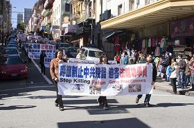 ![]() 二零一一年二月二十七日,旧金山的法轮功学员和支持者在旧金山中国城游行,声援九千万三退,呼吁制止迫害。 |