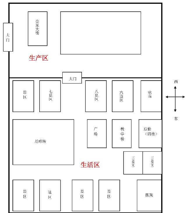 每个监区都是被分隔开的,各个监区有自己的生产任务、生产指标,监区管理组(人员)。