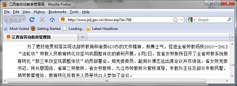 江西省劳动教养管理局网站,在二零一零年六月十三日登了一条题为《全省劳教系统教育转化“新三年攻坚巩固整体仗”动员部署会在省女所召开》的消息。(网络截图)