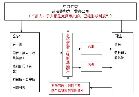 八、私设监狱-“洗脑班”除了用司法程序走过场,非法判法轮功学员,和用非法的劳教制度关押法轮功学员之外,政法委和610还私设监狱,名为“学习班”,俗称“洗脑班”,不仅没有任何法律程序,连违法的劳教手续都没有,任意绑架法轮功学员,把他们非法关押在某个地方,妄图“转化”他们。
