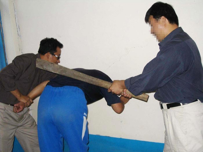 ![]() 酷刑演示:罚坐,长时间一种姿势坐在塑料小凳子上,旁边有普通教养人员看着,这种刑罚对人的腰部损害特别大,有的人因此腰部很长时间直不起来,长时间坐着臀部上有两块明显的黑斑,有的小凳子上有棱,屁股都坐烂了。 |