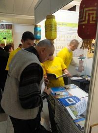 三天的博览会期间,一批批的人们不间断地来学炼法轮功