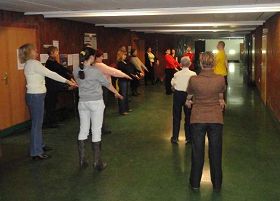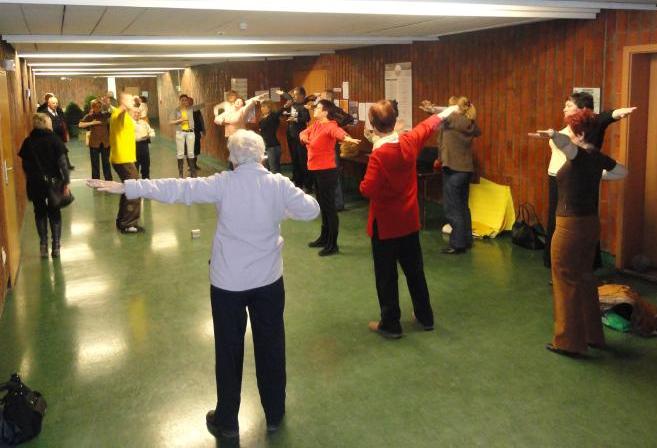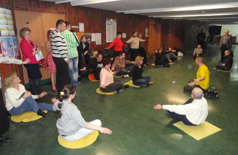 多名法轮功学员在现场演示祥和优美的功法后,听众们迫不及待地要求学炼法轮功。主办方为此在大厦五楼专门开辟一学炼功法之处,因地方不是太大,学炼者需分批进入。一批又一批的波兰人特地来到五楼学炼法轮功。三天到底有多少人前来学习,学员们没有统计,只记得从早到晚没有间断过,人们带着心灵渴望而来,带着心满意足而归。