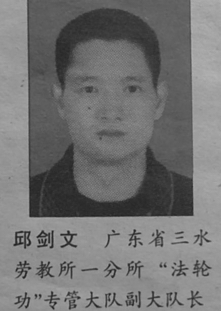 邱剑文 警号:4406579 一分所四大队副大队长,曾是主管迫害法轮功学员(曾专门到外省学习如何迫害法轮功学员的经验),现主管车间生产。