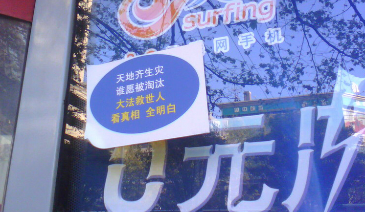 东北某地五月十三日随处可见法轮功真相条幅粘贴
